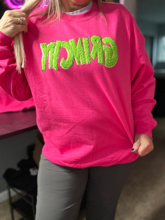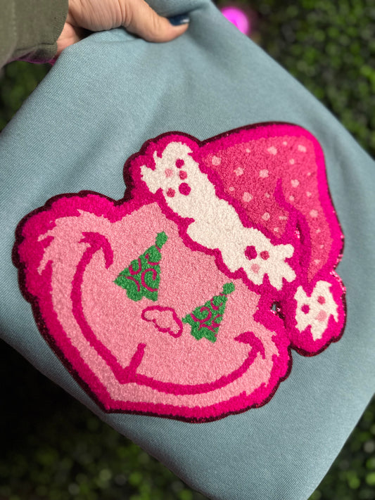 Grinchy Chenille Patch Christmas Sweatshirt RTS