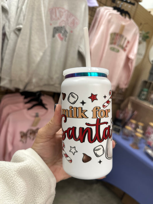 Milk For Santa 16oz stainless cup with lid & straw