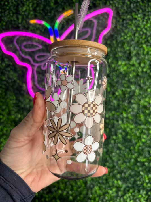 Daises Floral Glass Cup