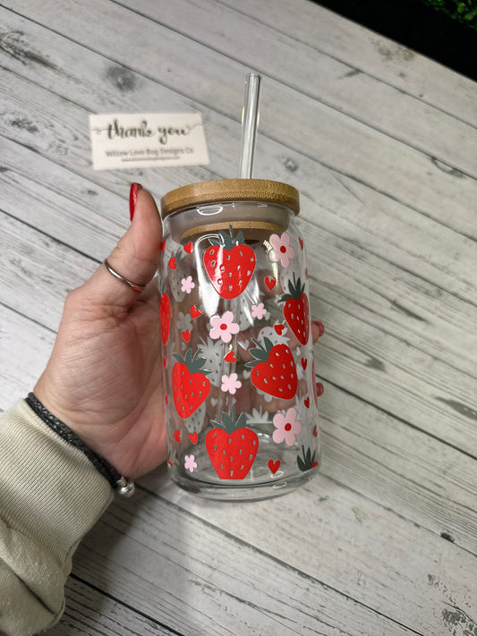 Strawberry Floral Glass Libby Cup