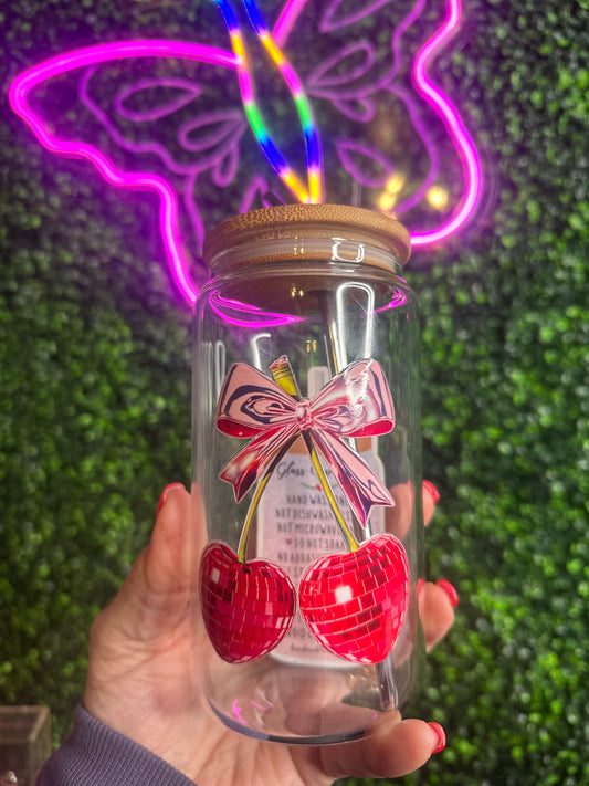 Disco Cherries Croquet 16oz glass cup