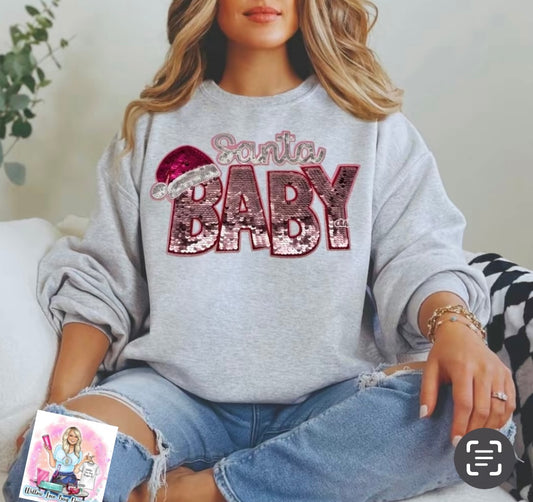 Santa Baby Sequin Patch Sweatshirt - Holiday Patch Pullover for Women