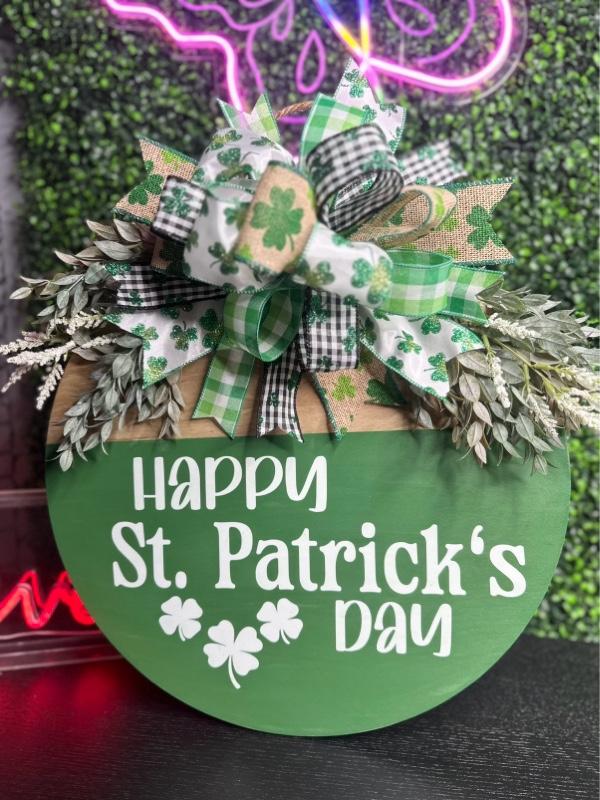 This door hanger is Handmade on a 18" round, 1/2" thick birch plywood. Hand stained and painted black. Sealed with a durable topcoat for protection. This Design is made with premium permanent Vinyl. Greenery and bow attached with staples or hot glue. Jute rope attached for hanging.