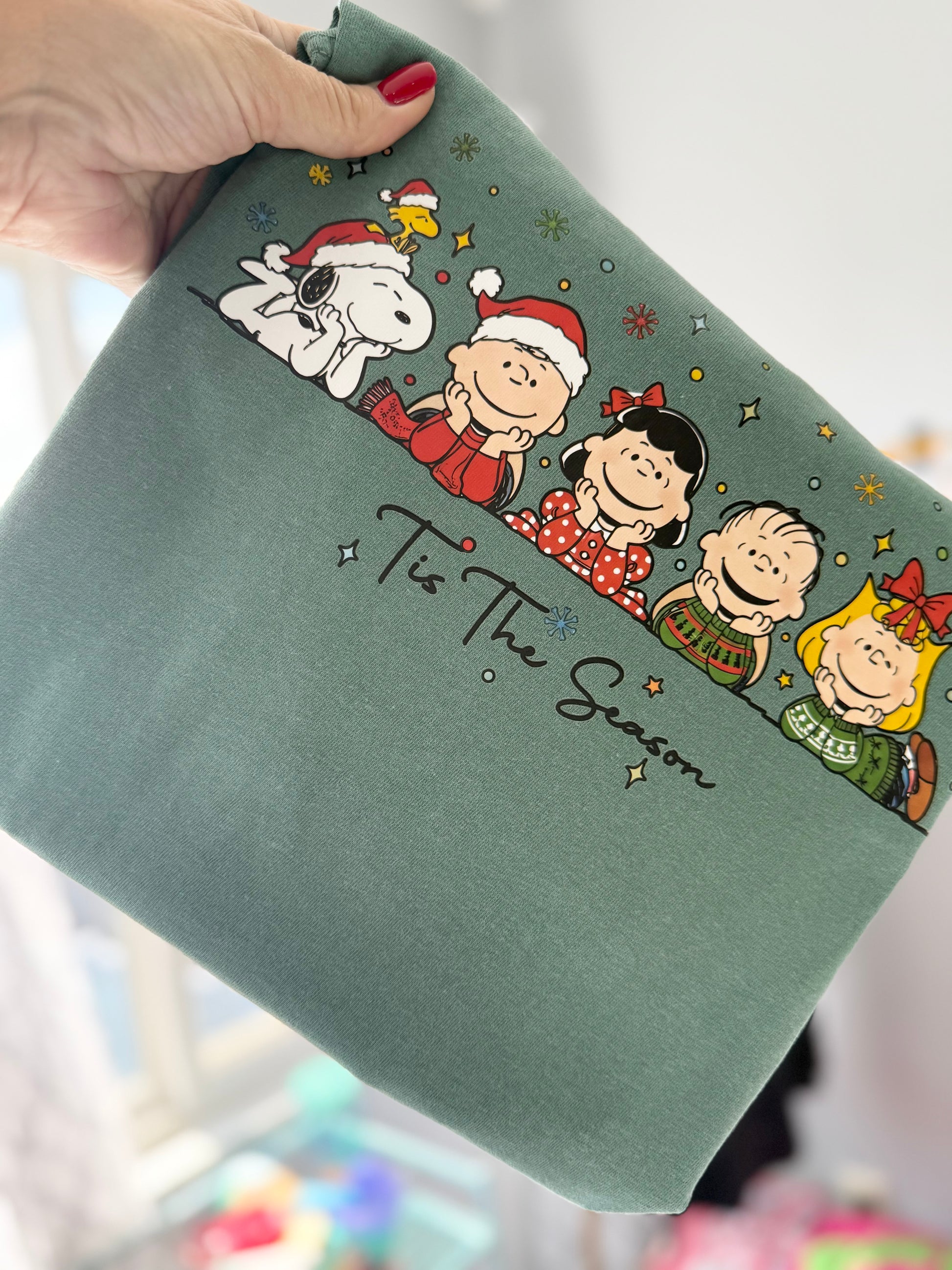 A fun yet festive Holiday crewneck t-shirt featuring a cute christmas favorit Tis the season Charlie design! Soft fleece, relaxed fit, and perfect for holiday photos or gifting.